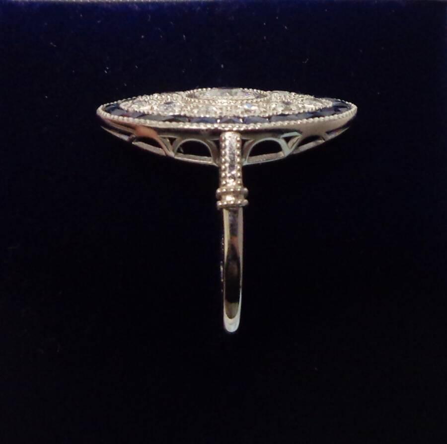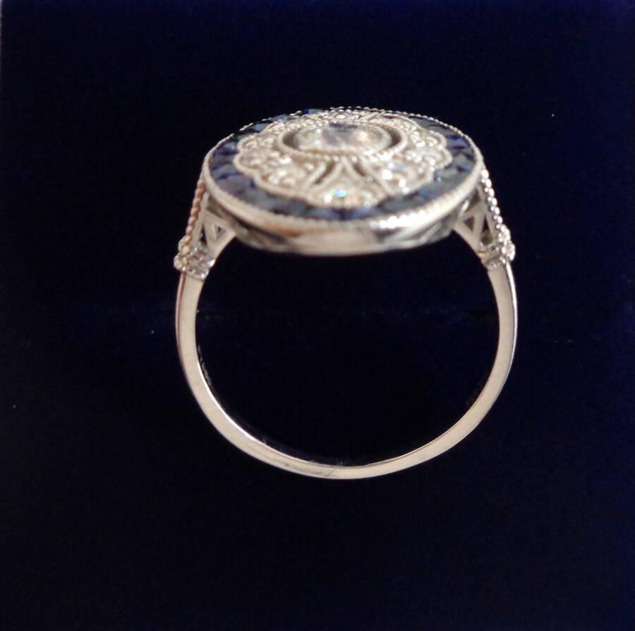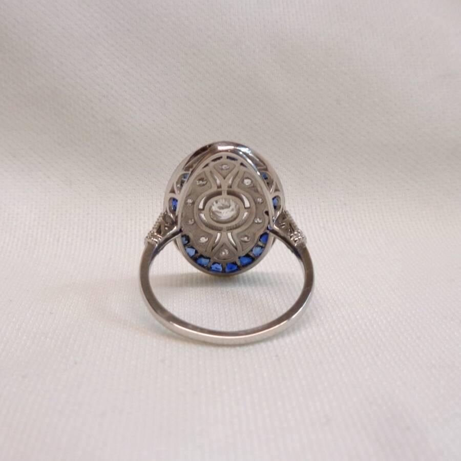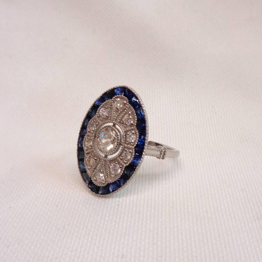 Art Deco Style Sapphire and Diamond Platinum Ring – Size M (S8551)
