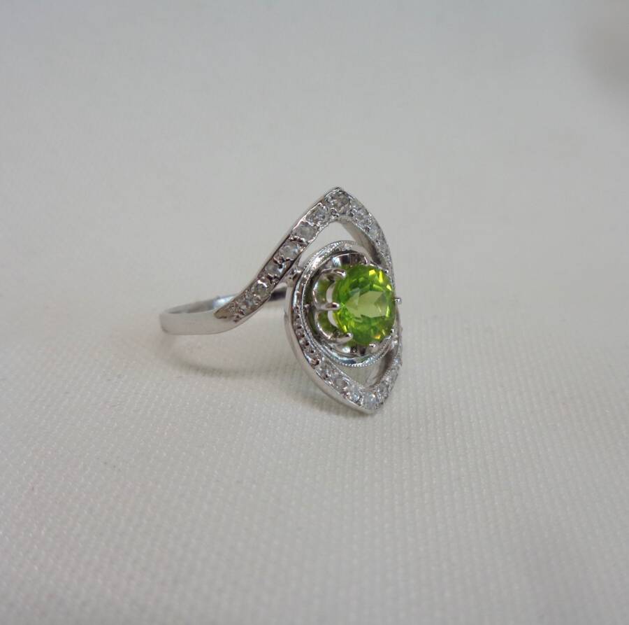 Beautiful Peridot and Diamond Ring Platinum – Size M (S8460)