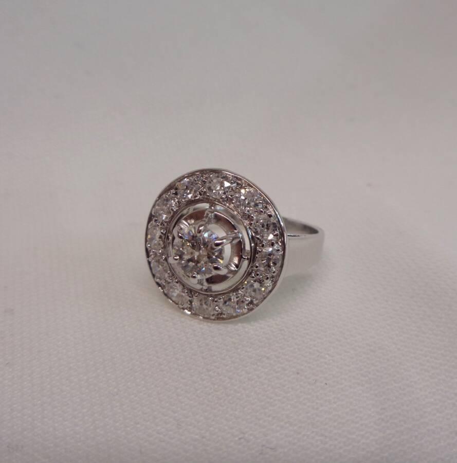 French 1950’s 1.28ct Diamond Target Ring in Platinum – Certified Natural Diamonds (S7423)