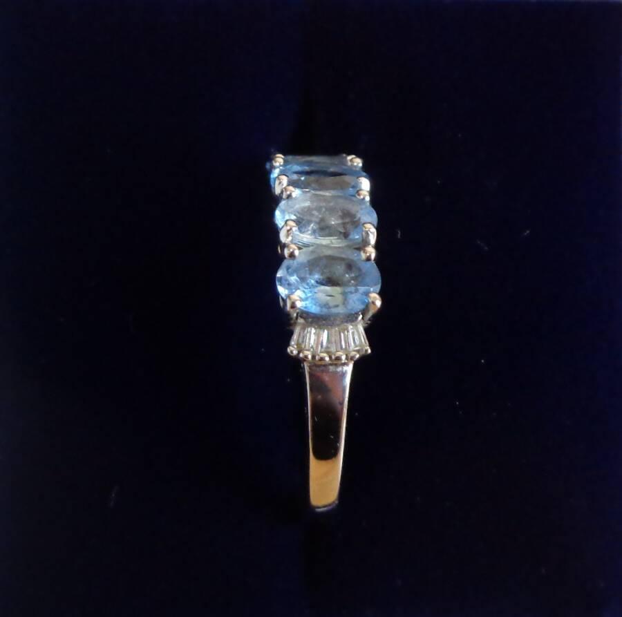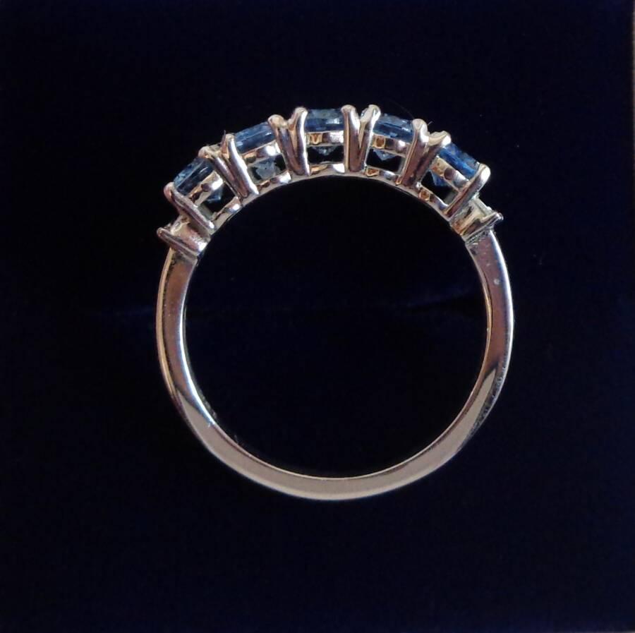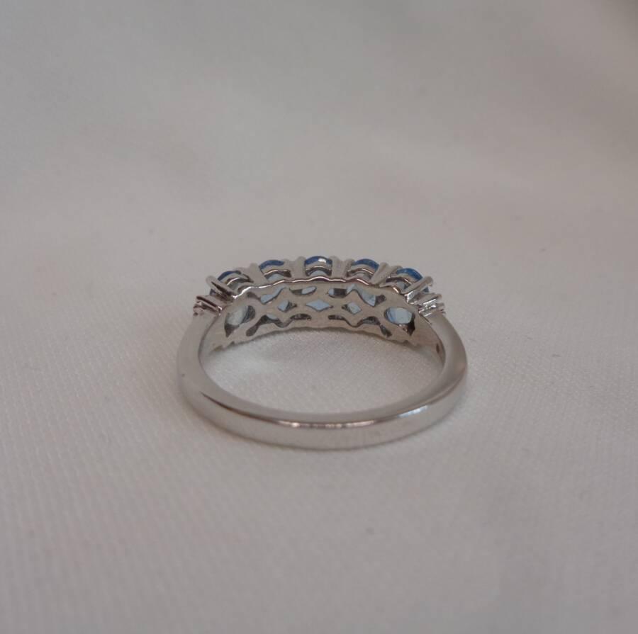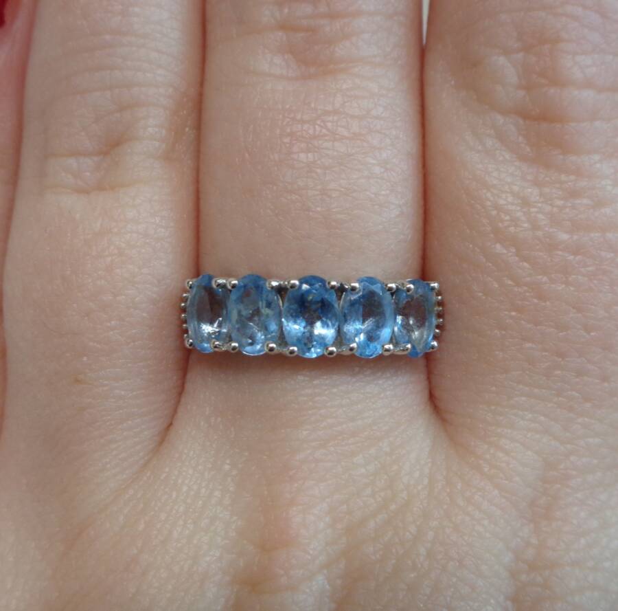 This ring features five oval cut Aquamarines that are a stunning sky blue in colour.