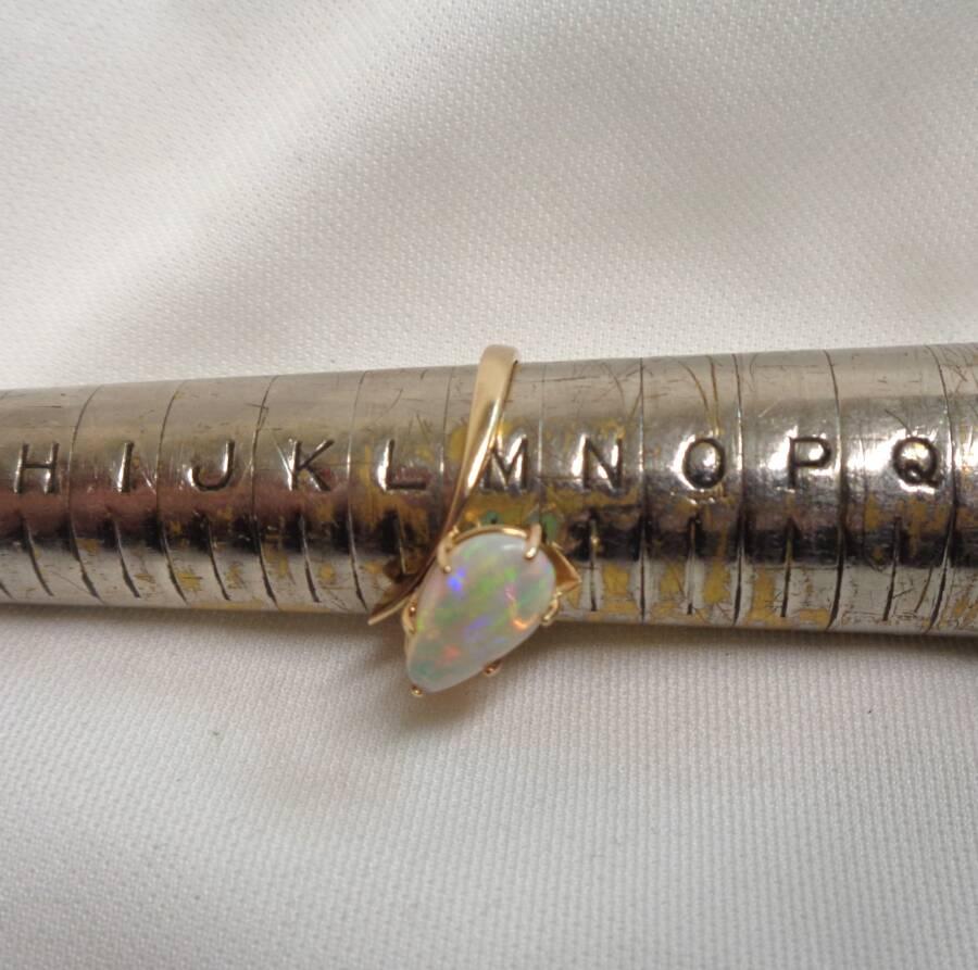 This Opal shines beautifully with its fiery greens, oranges and blues which can be seen from every angle.