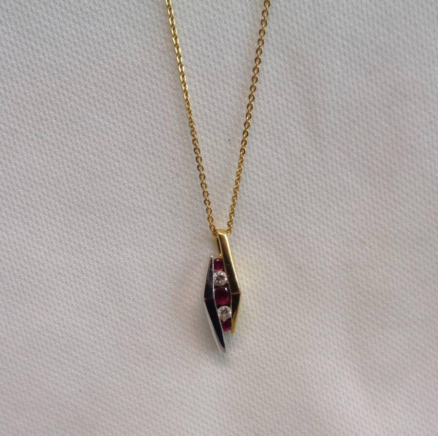 Ruby & Diamond Pendant Two Colour 18ct Gold – 18in Chain (S8514)