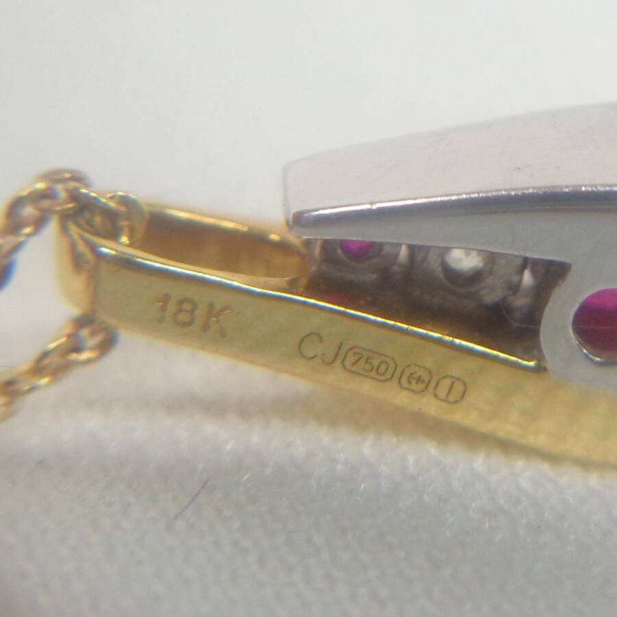 A Fabulous 18ct Two Colour Gold pendant set Rubies and Diamonds, hanging from an 18 inch 18ct Gold pendant chain.