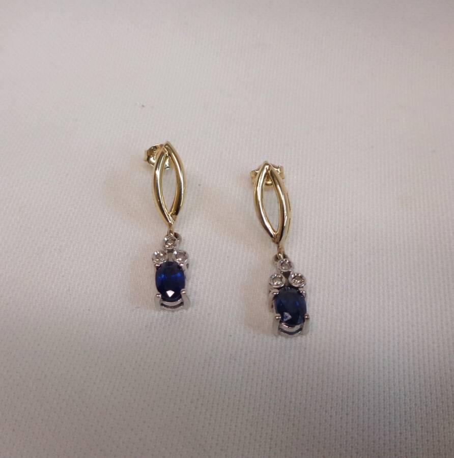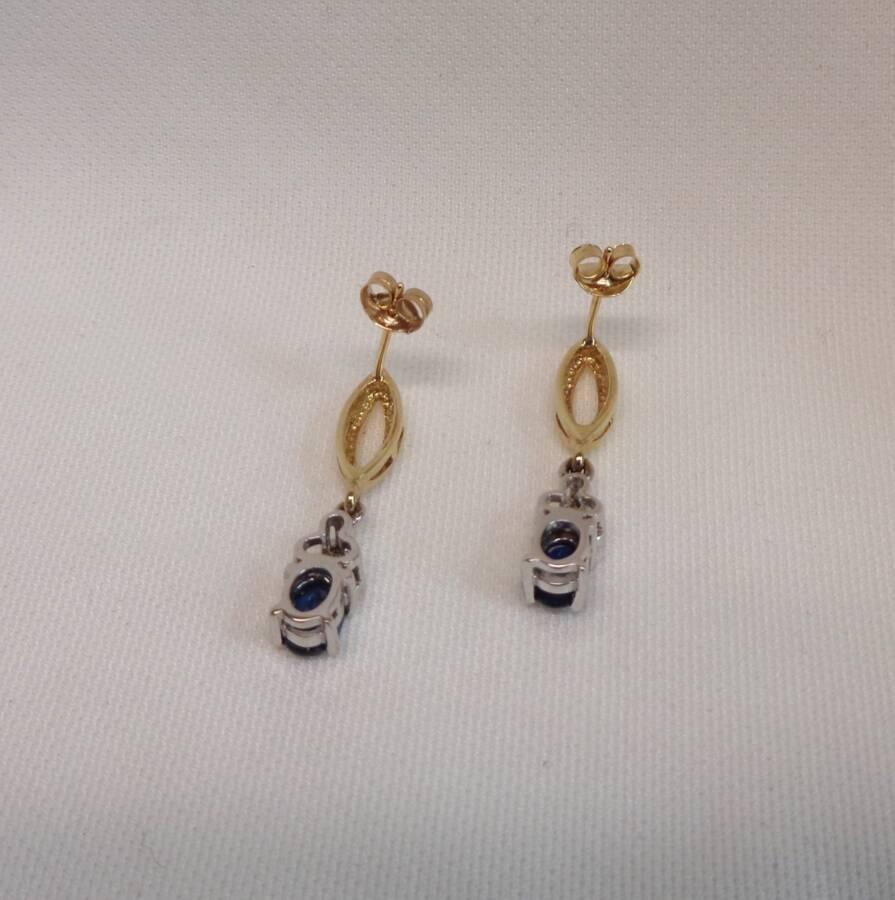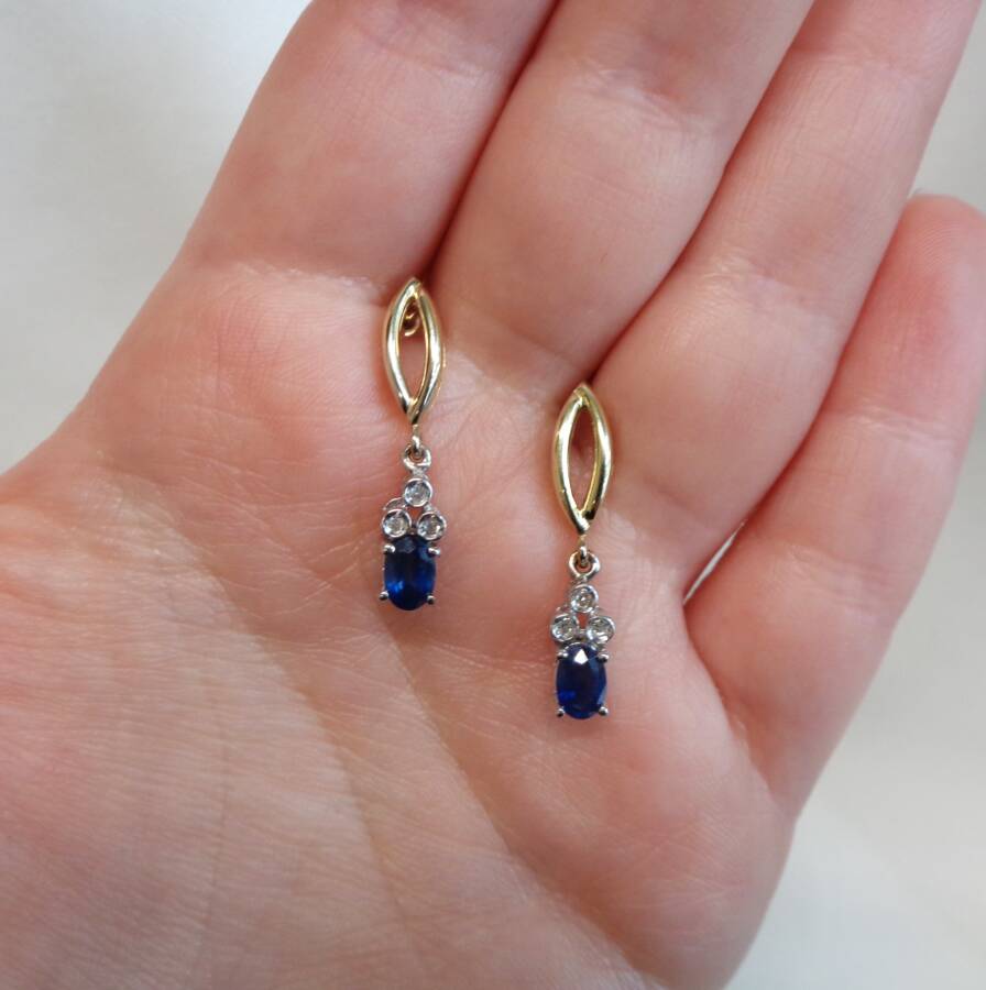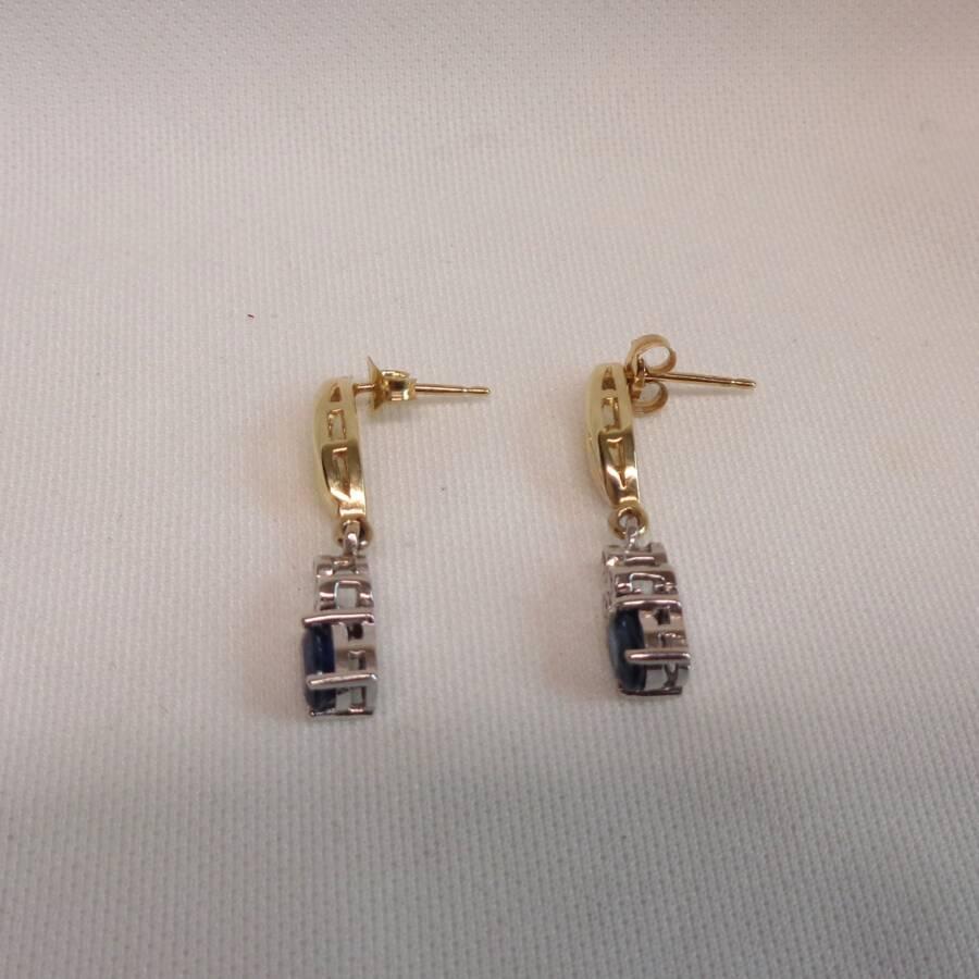 A gorgeous pair of Sapphire and Diamond drop studs set in 9ct Yellow and White Gold