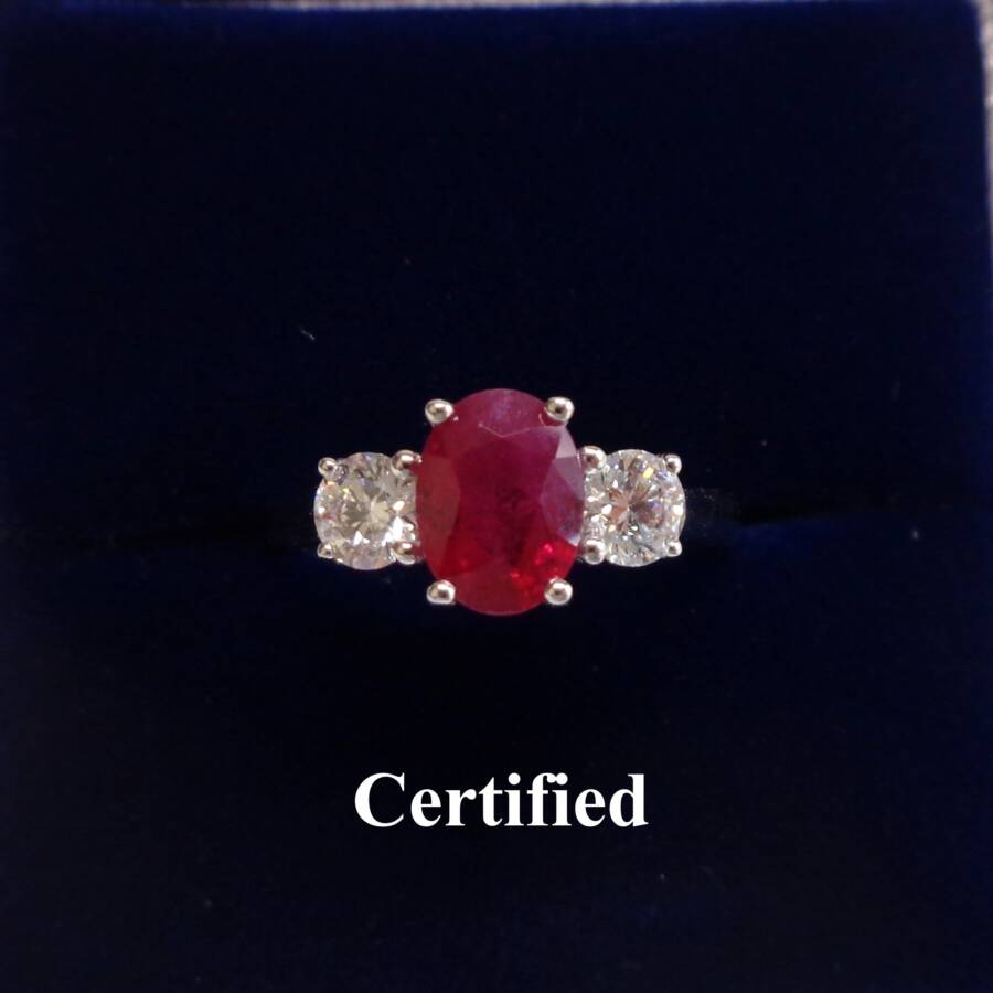 Stunning 0.90ct Ruby & 0.37ct Diamond Three Stone Ring 18ct Gold – Certified – S7896