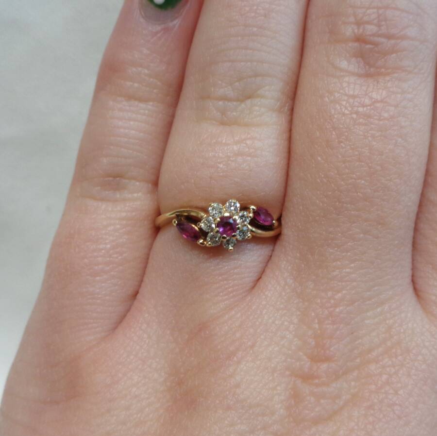 Stunning Ruby and Diamond Flower Cluster Ring – Size M 1/2