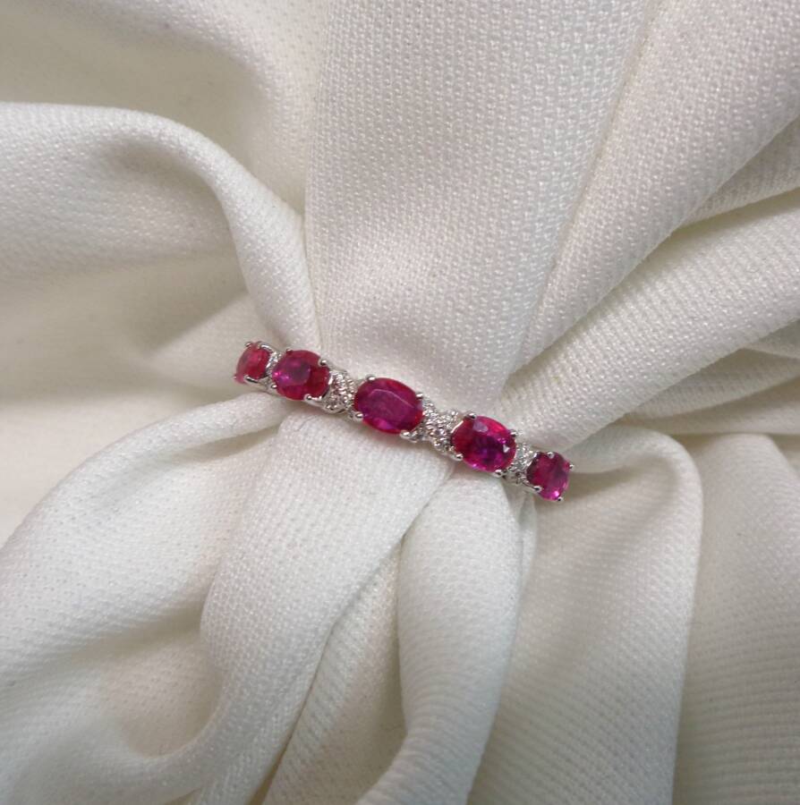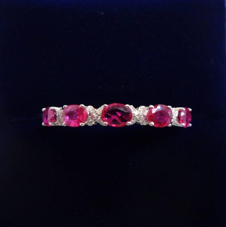 This ring features 0.81ct in rubies that alternate between the Diamonds. The rubies are a beautiful pinky-red in colour.
