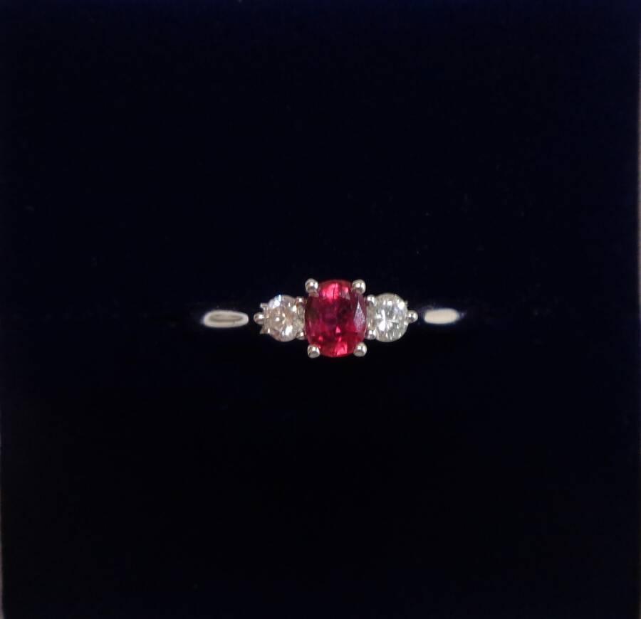 The ruby is a deep Ruby red in colour and totals 0.29 carats.