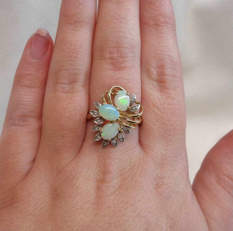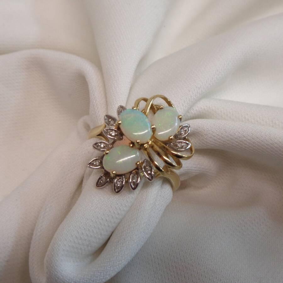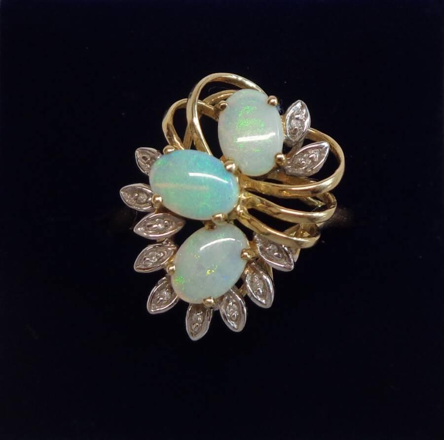 Unique Opal and Diamond Ring 9ct Yellow Gold – Size S (S8565)
